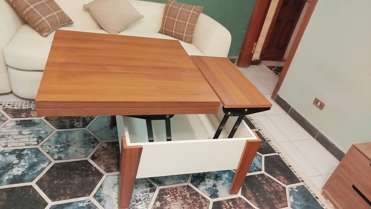 ترابيزة أنيقة بتصميم عصري، مزودة بميكانيزم رفع وفتح مبتكر يسمح بتحويلها بسهولة من ترابيزة ليفينج إلى ترابيزة سفرة عملية تتسع حتى 6 أفراد.